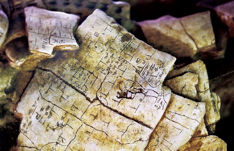 文字的出現,是人類進入文明時代的重要標志。甲骨文是一種刻寫在龜甲與獸骨上的中國古老文字,又稱“契文”、“甲骨卜辭”或“龜甲獸骨文”,是目前中國已發現的最早的成熟文字。殷墟甲骨文距今3000多年,3000多年來漢字結構沒有變,這是中華文明傳承的重要標志,也是人類共同的精神財富。圖為從殷墟遺址甲骨窖穴內發掘出土的刻有文字的龜甲。 新華社記者 王頌/攝