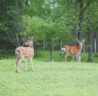 吉林省撫松縣露水河國家森林公園里人工馴養的梅花鹿。