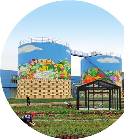 “百蔬園”戶外東側有兩座由功能性儲能罐改造而成的藝術建筑,由中央美院的藝術家團隊歷時3個月設計、十幾人純手繪完成。巧妙將罐體變為菜籃,加上手繪蔬菜,塑造出一組3D立體菜籃的大地藝術景觀效果,是“百蔬園”最佳拍照打卡地之一。