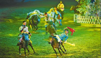 5月1日,呼和浩特市的內蒙古少數民族群眾文化體育運動中心,上演大型馬舞劇2019版《千古馬頌》。 丁根厚攝(人民視覺)