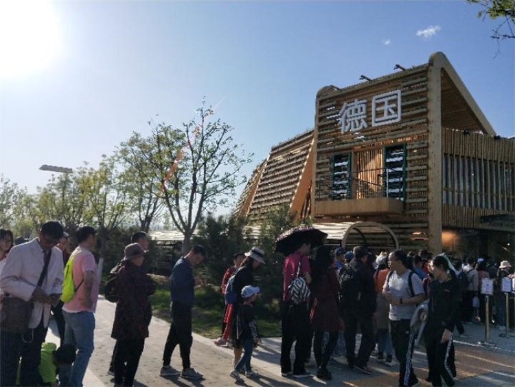 記者1日下午在世園會園區看到,在中國館、國際館等核心場館以及北京園、德國館等熱門展園外,人們排起長隊等待參觀。在草坪劇場,外國演出團隊的精彩演唱也吸引了大批游客觀賞。園區處處都是游人如織。