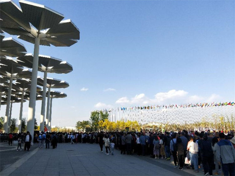 國際館外已排起長隊。新華社記者 魏夢佳 攝