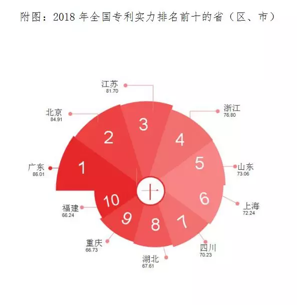 《2018年全國專利實力狀況報告》(下文簡稱“《報告》”)在京發布。《報告》顯示,廣東、北京、江蘇、浙江、山東、上海、四川、湖北、重慶、福建位列全國專利綜合實力前十。湖北、河南、湖南位居中部及東北地區前三位,四川、重慶、陜西位居西部地區前三位。