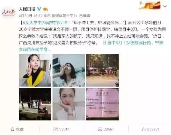 這個5月,寧波“擋刀女孩”崔譯文無疑成了億萬網友追捧的“超級英雄”。各大 媒體紛紛轉載,為這個姑娘點贊: