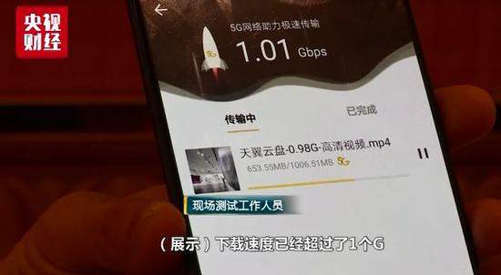 現場測試工作人員:下載速度已經超過了1個G,一部高清電影,9秒鐘就可以下載完成。