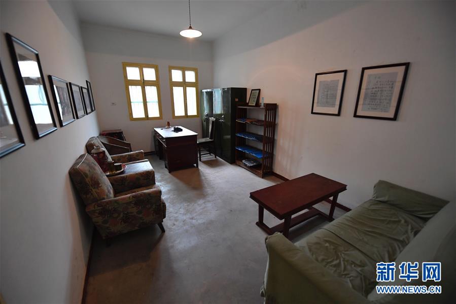 鄧稼先舊居位于“將軍樓”的正對面,二室一廳的平房前后,是一片香樟和梧桐林,屋里仍保留著當年原貌:臥室里僅有一排書柜、一個鐵架床、一個普通衣柜;辦公室里有一張辦公桌、一把藤椅、兩個單人布沙發、一個小茶幾,那臺手搖式計算機和鐵皮柜仿佛無聲地“訴說”著往昔的不平凡。
