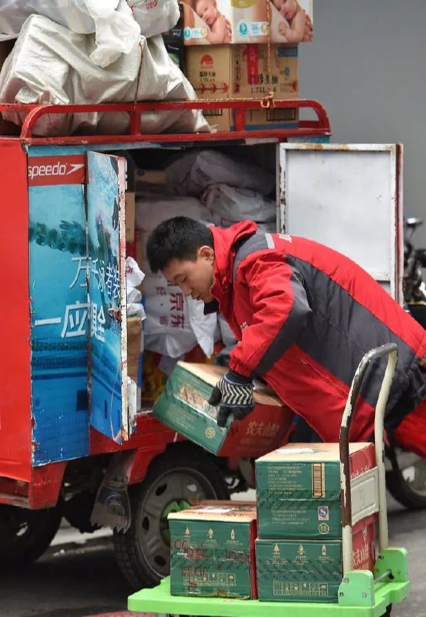 四天假期,京東物流每個快遞員平均送貨量達到500-600單,每天約為100-150單,每個快遞員平均每天配送貨物重量超過400公斤。