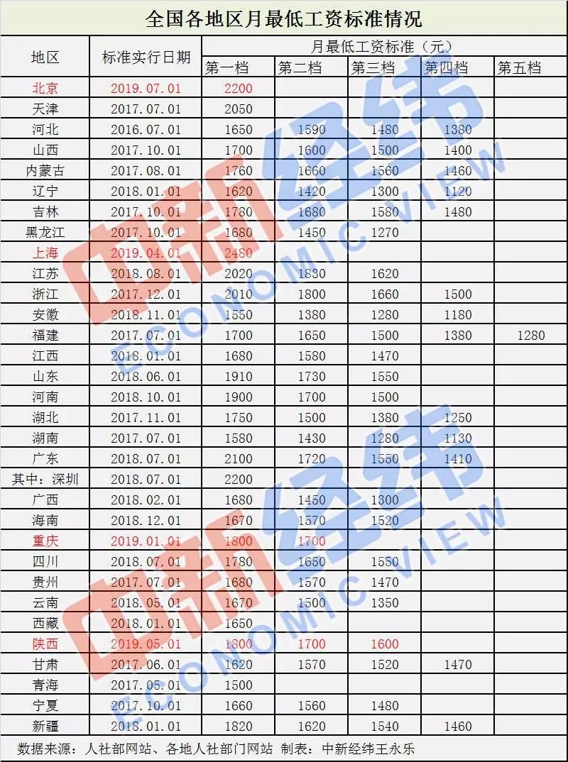 今年以來明確調整最低工資標準的地區至少有上海、北京、重慶、陜西等4省市。