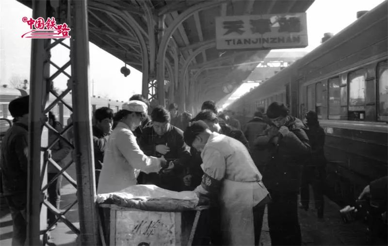 上圖:上世紀90年代初,站臺服務員正在送水。