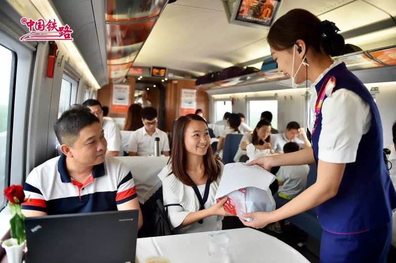 下圖:2018年,旅客在京滬高鐵列車上收到網絡訂餐。