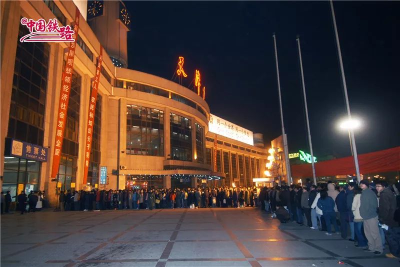 上圖:2006年,旅客在天津站深夜排隊購票。