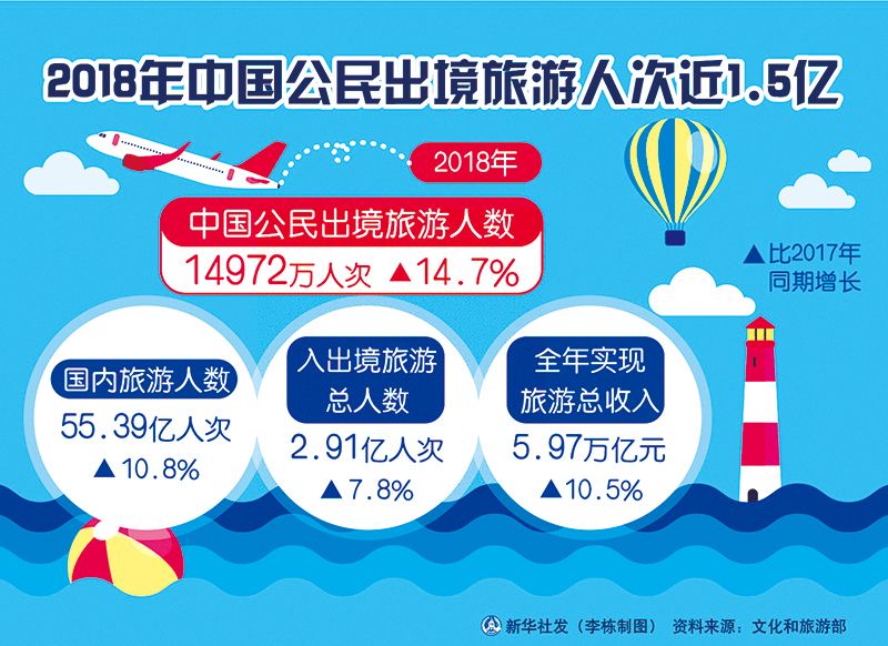 近年來,隨著我國經濟社會發展,人民生活水平得到顯著提高,國民旅游休閑生活更加精彩,出境旅游成為新的時尚。圖為2018年中國公民出境旅游相關數據。 新華社發 李棟/制圖