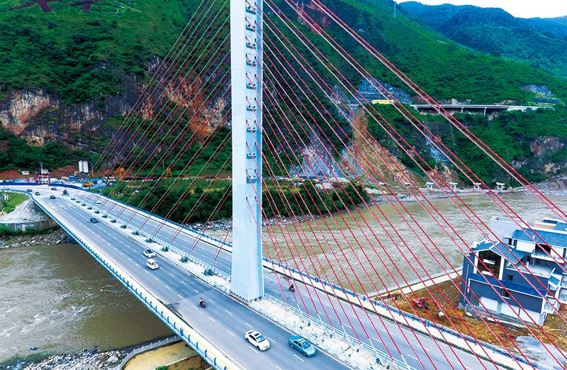 黨的十八大以來,我國把扶貧開發擺在突出位置,脫貧攻堅取得了決定性進展,穩步向歷史性解決絕對貧困和全面建成小康社會邁進。云南省怒江傈僳族自治州98%以上的國土是高山峽谷,山勢陡峭,過去群眾要依靠溜索跨越怒江,出行極為困難。如今,怒江傈僳族自治州交通狀況得到極大改善,許多溜索被橋梁所取代。上圖是2013年2月2日拍攝的瀘水市六庫鎮雙米地村的一名村民從集市上采購年貨歸來,依靠溜索過怒江(新華社記者 王長山/攝)。下圖是2016年9月9日拍攝的雙向六車道大型公路跨江橋梁——通達橋(新華社記者 胡超/攝)。