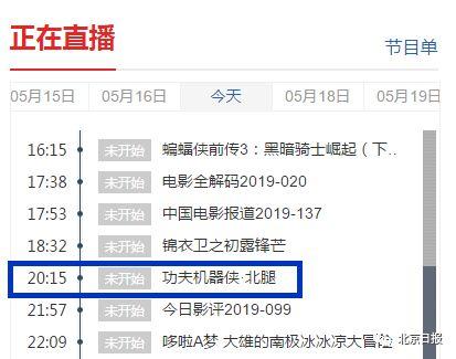 2019年5月16日《北京晚報》42版“今日電視節目預告”截圖
