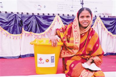 2018年2月,中國政府和聯合國開發計劃署向孟加拉國北部洪泛平原受洪災影響的群眾提供援助。圖為領取救災物資的當地民眾。