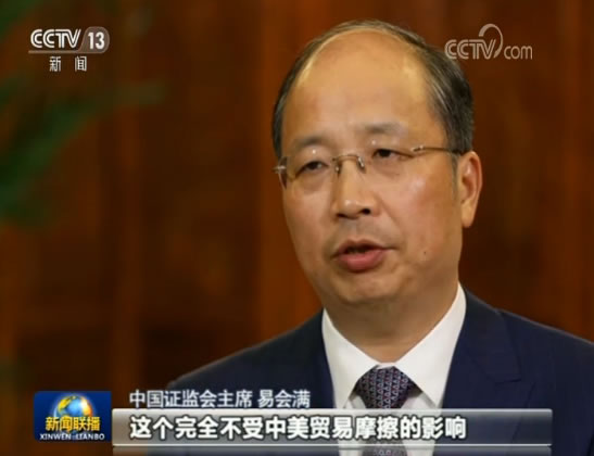 央視網消息(新聞聯播):中國證監會主席易會滿在接受記者采訪時表示,中美經貿摩擦對資本市場影響是客觀存在的,但程度是可控的。我國資本市場的韌性在增強,抗風險能力在提高。