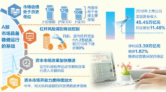 易會滿:中美經貿摩擦對上市公司影響是客觀存在的,短期看有挑戰,但長遠看,又會達到新的平衡。根據2018年年報,上市公司實現營業收入45.45萬億元,同比增長11.48%,凈利潤3.39萬億元,略降1.82%,整體經營情況保持穩定。
