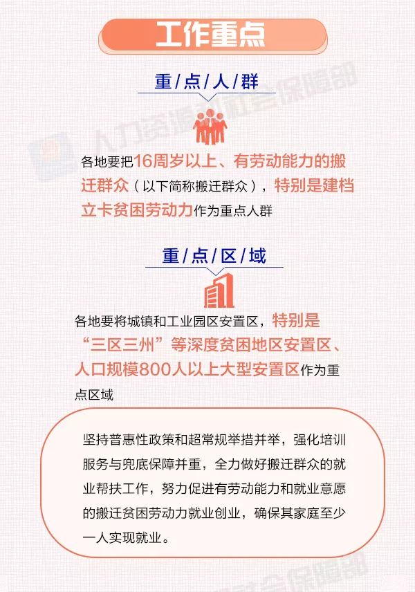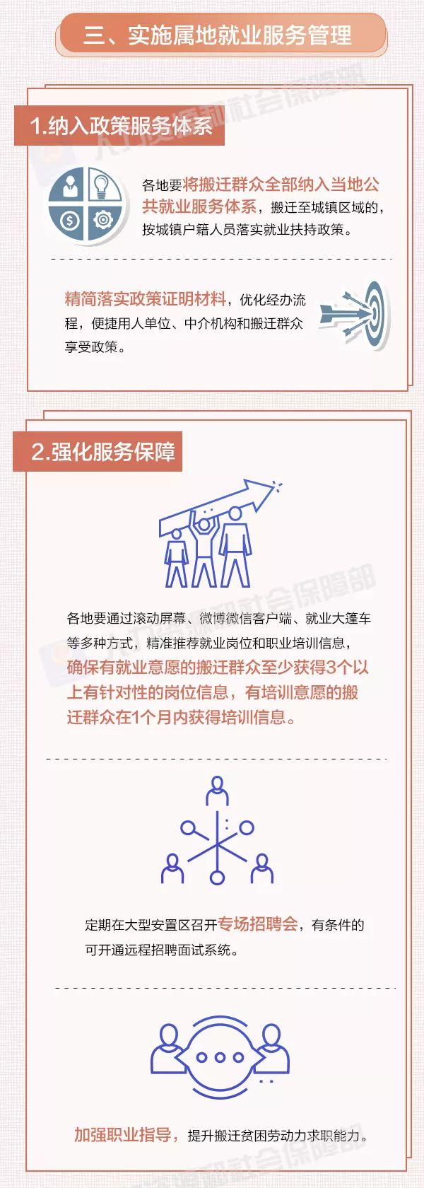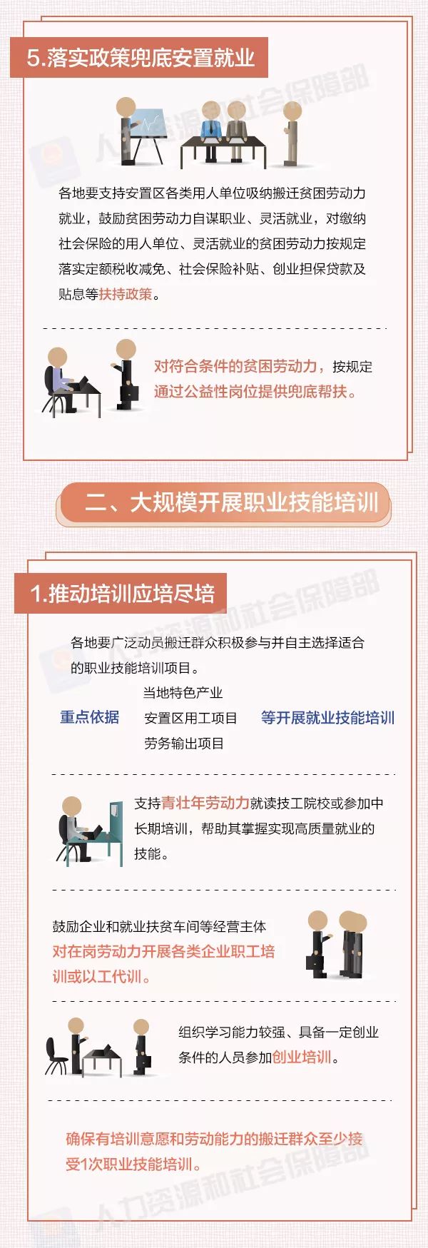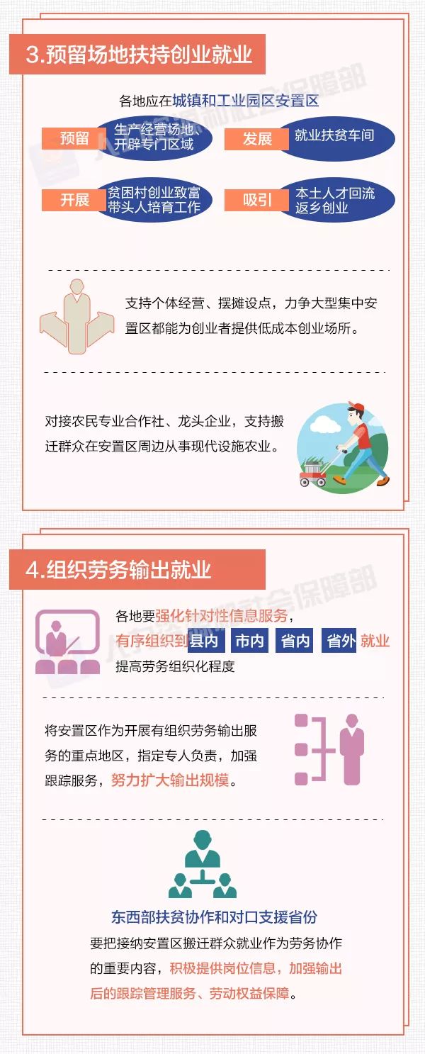 日前,人力資源社會保障部、國家發展改革委、財政部、國務院扶貧辦聯合印發《關于做好易地扶貧搬遷就業幫扶工作的通知》。帶你一圖看懂具體怎么做——
