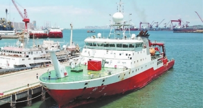 堅持和發展中國特色社會主義,實現中華民族偉大復興,必須堅定不移貫徹科教興國戰略和創新驅動發展戰略,堅定不移走科技強國之路。圖為靠泊在山東青島母港的“科學”號準備解纜起航。新華社發