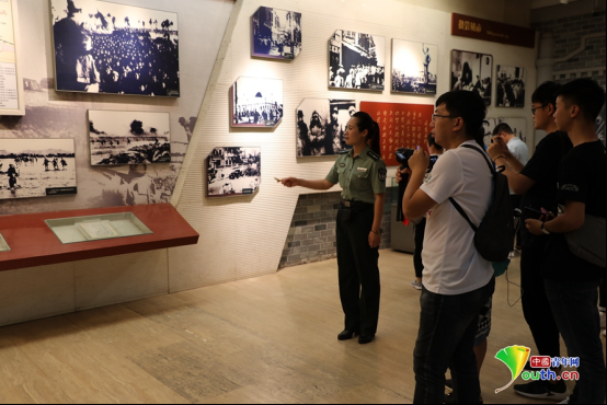 攝制團隊在西柏坡紀念館聆聽講解。中國青年網記者 曾繁華 攝