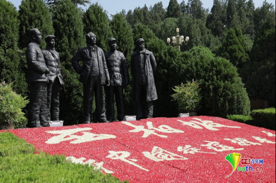 西柏坡“五大書記”雕塑。中國青年網記者 陳一雄 攝