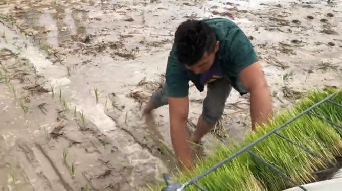 稻苗以機械化方式播種