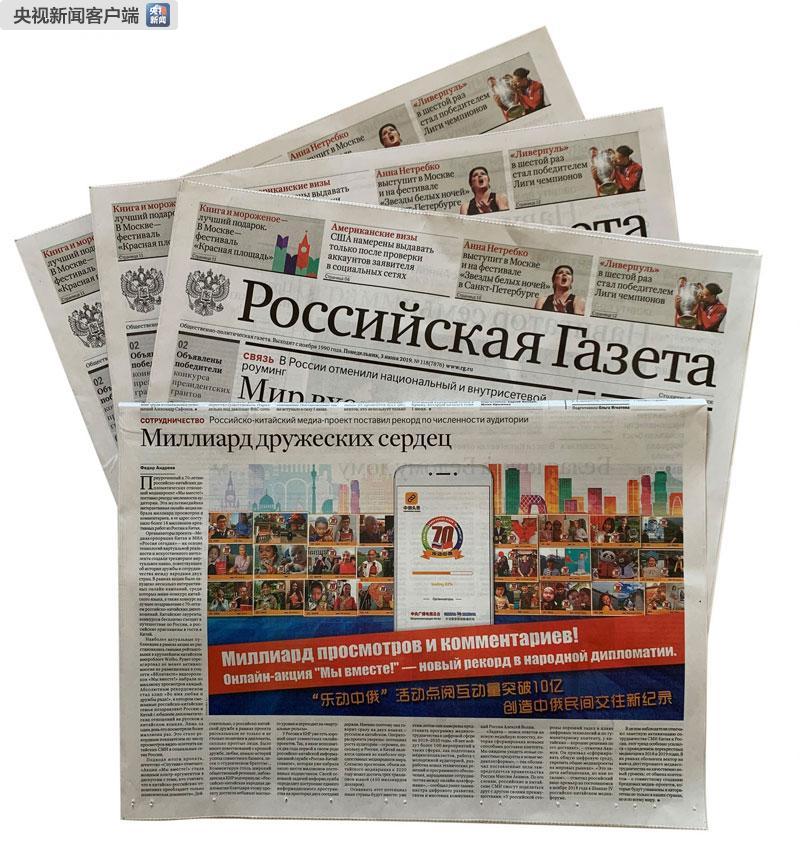 △6月3日出版的《俄羅斯報》用半個版刊登題為《億萬顆友好之心》的文章,詳細報道了“樂動中俄”活動內容與成果。(國廣記者蔡靖骉提供)