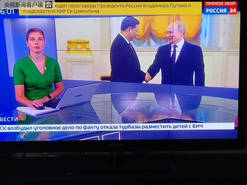 △俄羅斯國家電視臺“俄羅斯24”頻道對習普會進行了現場直播。(國廣記者李俊翔拍攝)