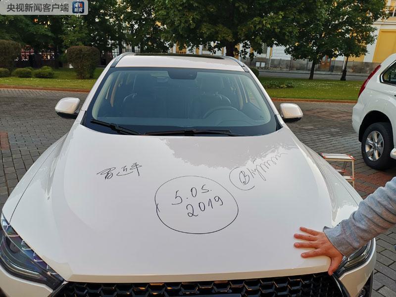 △兩國元首在汽車引擎蓋上簽字。(央視記者張宇拍攝)