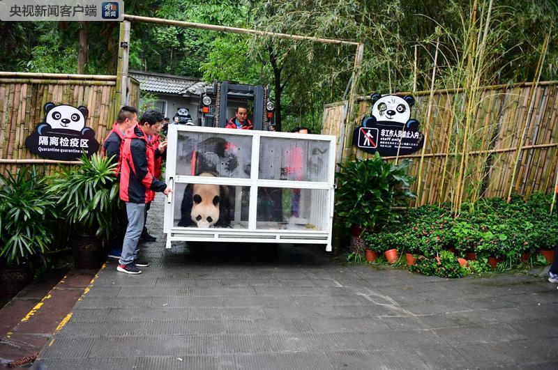 △5月29日,“如意”和“丁丁”從四川雅安的碧峰峽大熊貓基地出發,前往俄羅斯開展科研合作。(央視記者鄭波提供)