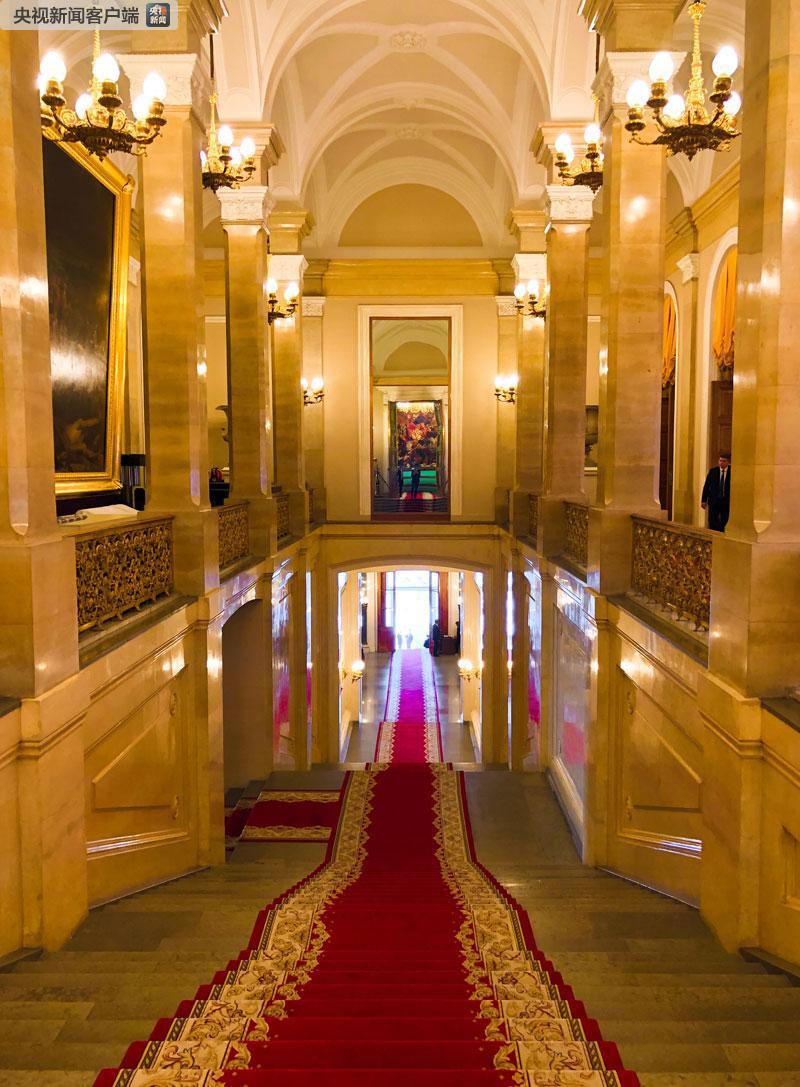 △中俄雙方在亞歷山大廳舉行大范圍會談。1933-1934年,亞歷山大廳和安德烈廳被改建為蘇聯最高蘇維埃會議廳,豪華的裝飾都被拆除。1994-1998年這間大廳得到全面修復。(央視記者馬亞陽拍攝)