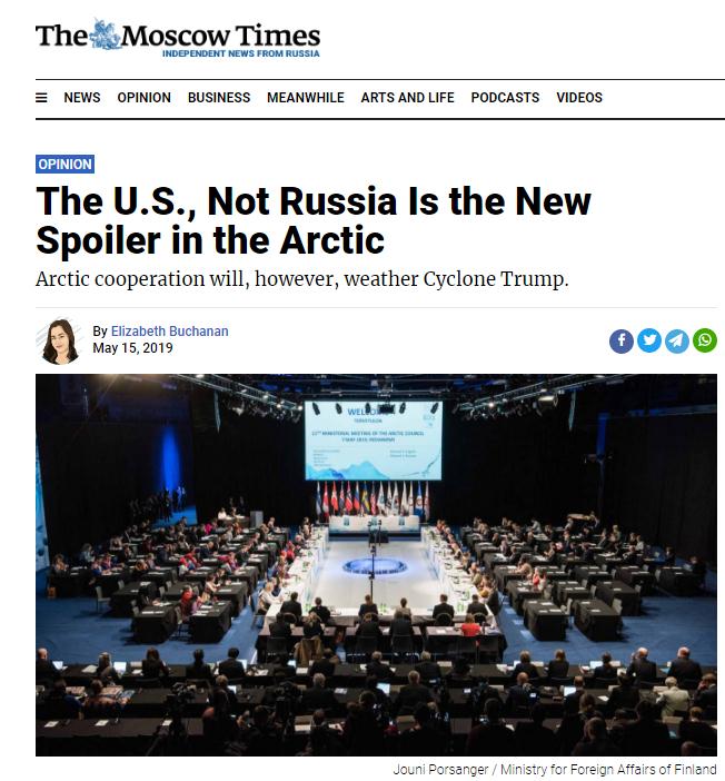 美國國務卿蓬佩奧誣稱中俄在北極地區具有擴張野心,俄羅斯《莫斯科時報》刊發駁斥文章。