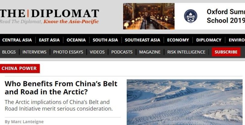 挪威國際事務研究機構資深研究員蘭馬克發表在“外交學者”網站上的文章截圖。