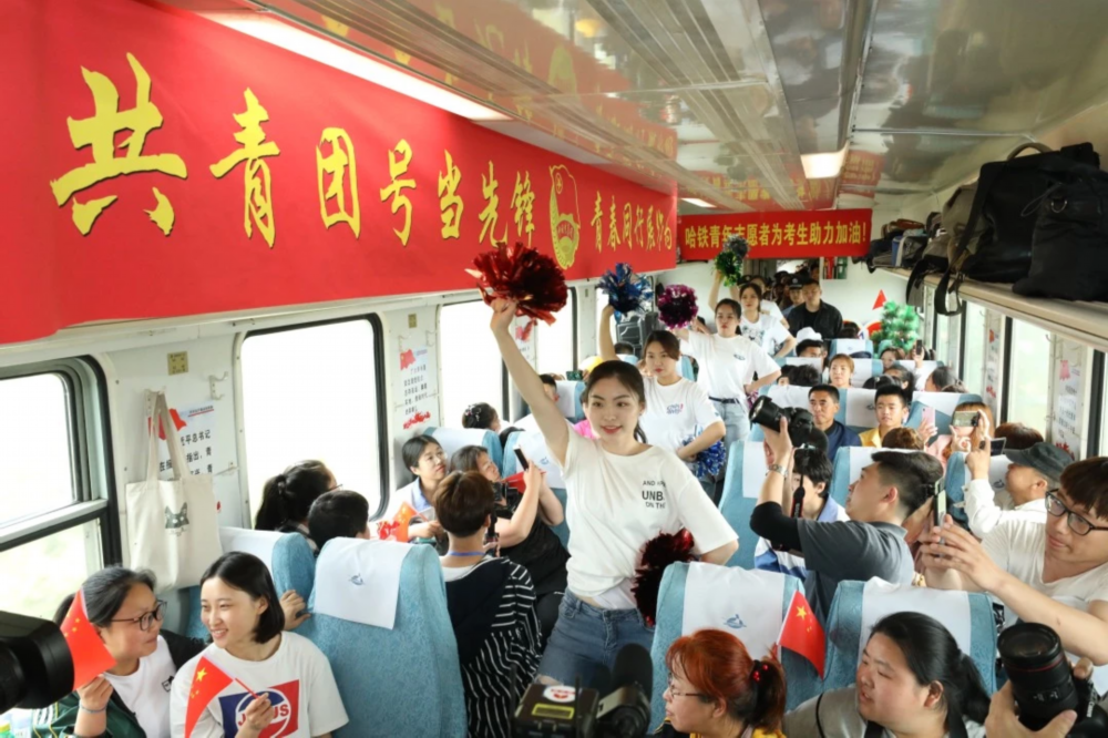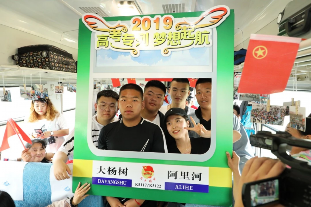 6月5日11時(shí)30分,內(nèi)蒙古自治區(qū)呼倫貝爾市鄂倫春自治旗,在一片祝福聲中, 500余名考生在大楊樹站踏上剛剛被全國鐵道團(tuán)委授予“全路共青團(tuán)號(hào)” 稱號(hào)的K5117次“高考專列”,向阿里河鎮(zhèn)駛?cè)?,車廂?“全路共青團(tuán)號(hào)”獎(jiǎng)牌熠熠生輝,年輕的鐵路志愿者親切地引導(dǎo)考生入座,這是中國鐵路哈爾濱局集團(tuán)有限公司第17年開行高考專列。