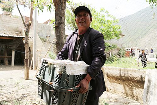 肖農拿來空籃,準備領新一批雞苗。人民網 宋晨攝