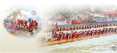 最熱鬧的要數龍舟景——各兄弟村、老表村、友好村劃著龍舟輪番上門做客,好一場節日盛典。各村按照約定俗成的日期發出邀請叫“招景”,接受邀請欣然赴約叫“趁景”。