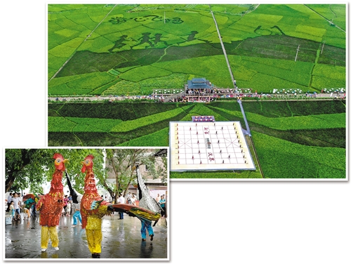 左圖 民間藝人在德慶縣悅城鎮羅洪村為游人表演雄雞舞。 新華社記者 陶 明攝