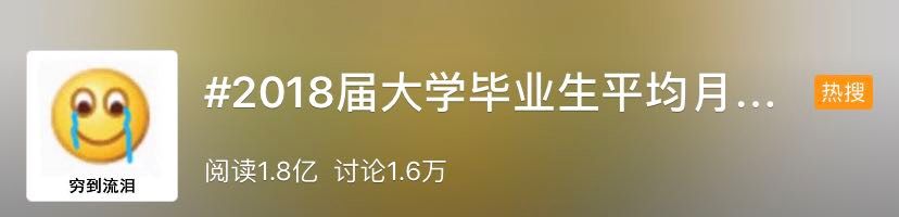 報告發布后,話題#2018屆大學畢業生平均月收入4642元#登上微博熱搜。