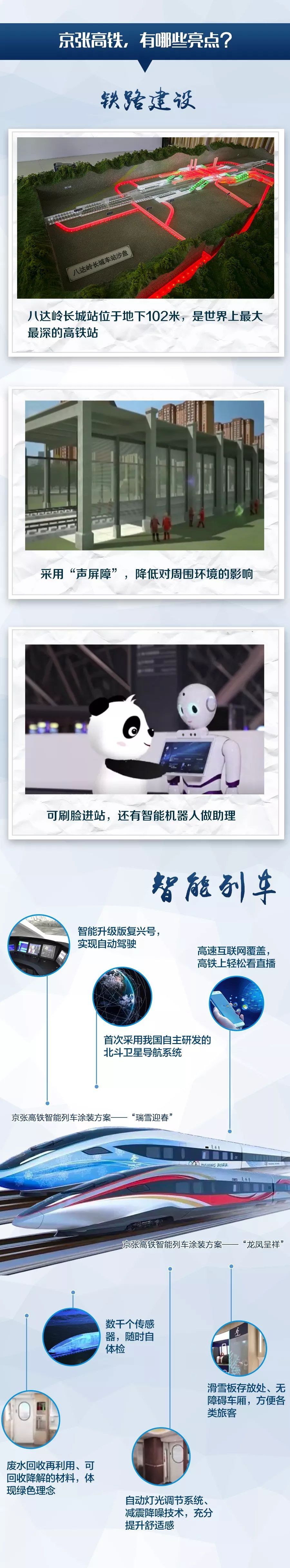 百余年前的京張鐵路,打破中國不能自建鐵路的斷言,今天的京張高鐵,開了世界智能鐵路之先河。京張高鐵究竟有哪些亮點?通過一張圖,一起了解。