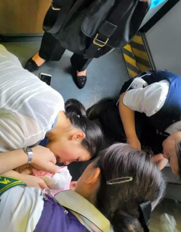 來到11號車廂后,金佳慧看到一名約1歲大的幼兒面色發白,已經窒息。情況緊急,條件有限,她立即將幼兒趴在自己腿上,運用海姆立克急救法進行施救。