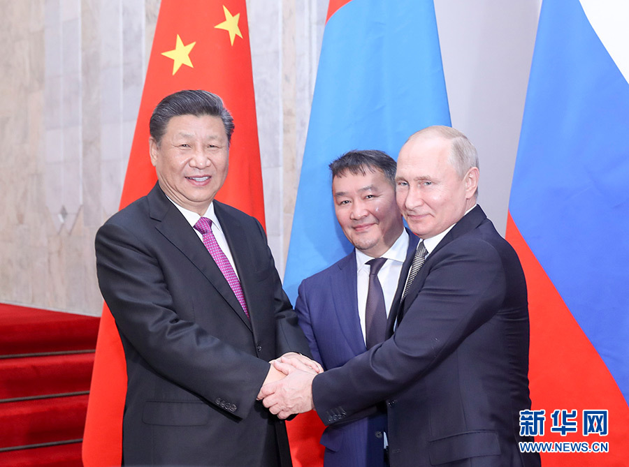 習(xí)近平指出,今年中方將分別同俄蒙兩方慶祝建交70周年,中俄蒙三方合作將迎來新的機(jī)遇。在當(dāng)前國際上保護(hù)主義、單邊主義抬頭背景下,三方要堅(jiān)定促進(jìn)區(qū)域合作、實(shí)現(xiàn)共同發(fā)展的目標(biāo),圍繞三國發(fā)展戰(zhàn)略對接這條主線,推進(jìn)各領(lǐng)域全面合作,共同釋放三國維護(hù)多邊主義、打造開放型世界經(jīng)濟(jì)的積極信號。
