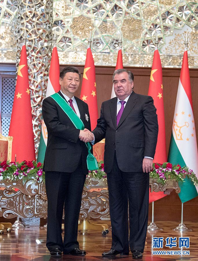 新華社杜尚別6月15日電(記者郝方甲 駱珺)國家主席習近平15日在杜尚別出席儀式,接受塔吉克斯坦總統拉赫蒙授予“王冠勛章”。