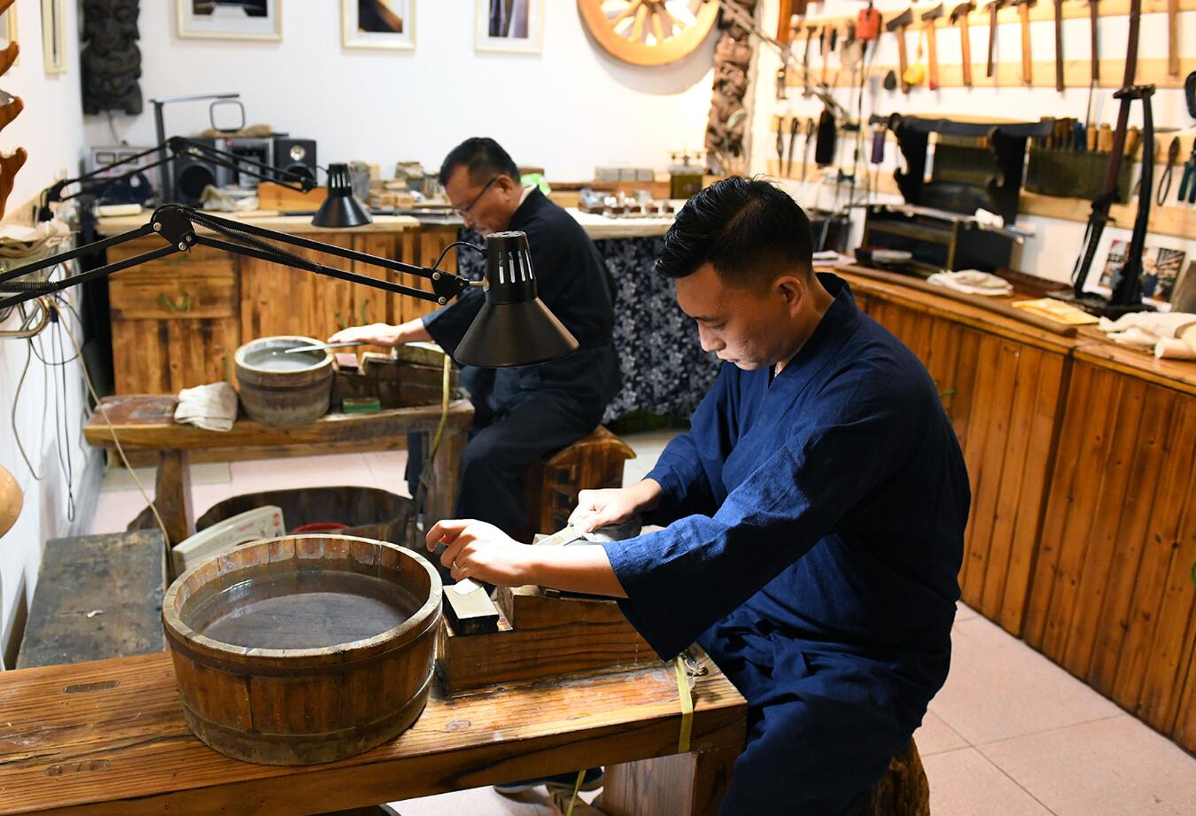 石家莊市民閆民自幼酷愛兵刃刀劍,他已從事古兵器修復(fù)工作30余年。其子閆鵬受其影響,于2015年辭去原有工作,與父親一起投入到古兵器修復(fù)中。如今父子兩人累計(jì)修復(fù)古兵器500余件。