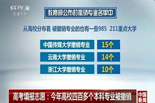 各有14個(gè)和10個(gè)專業(yè)撤銷