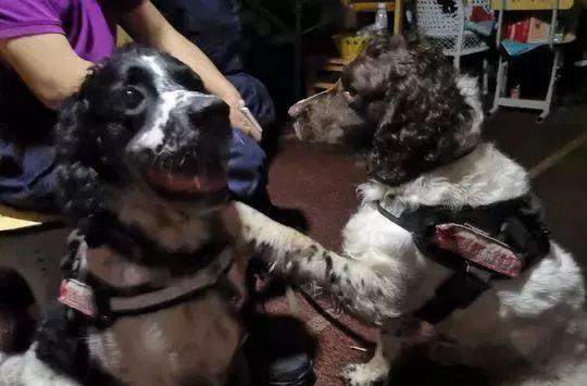 “大懵”和“巴庫”這兩只搜救犬已經參加過去年宜賓興文的地震救援行動,表現(xiàn)不俗。在興文救援行動中,它們失去了一位弟弟“賤賤”,它因在廢墟中誤觸疑似劇毒物質導致肝衰竭,經全力搶救無效犧牲了。