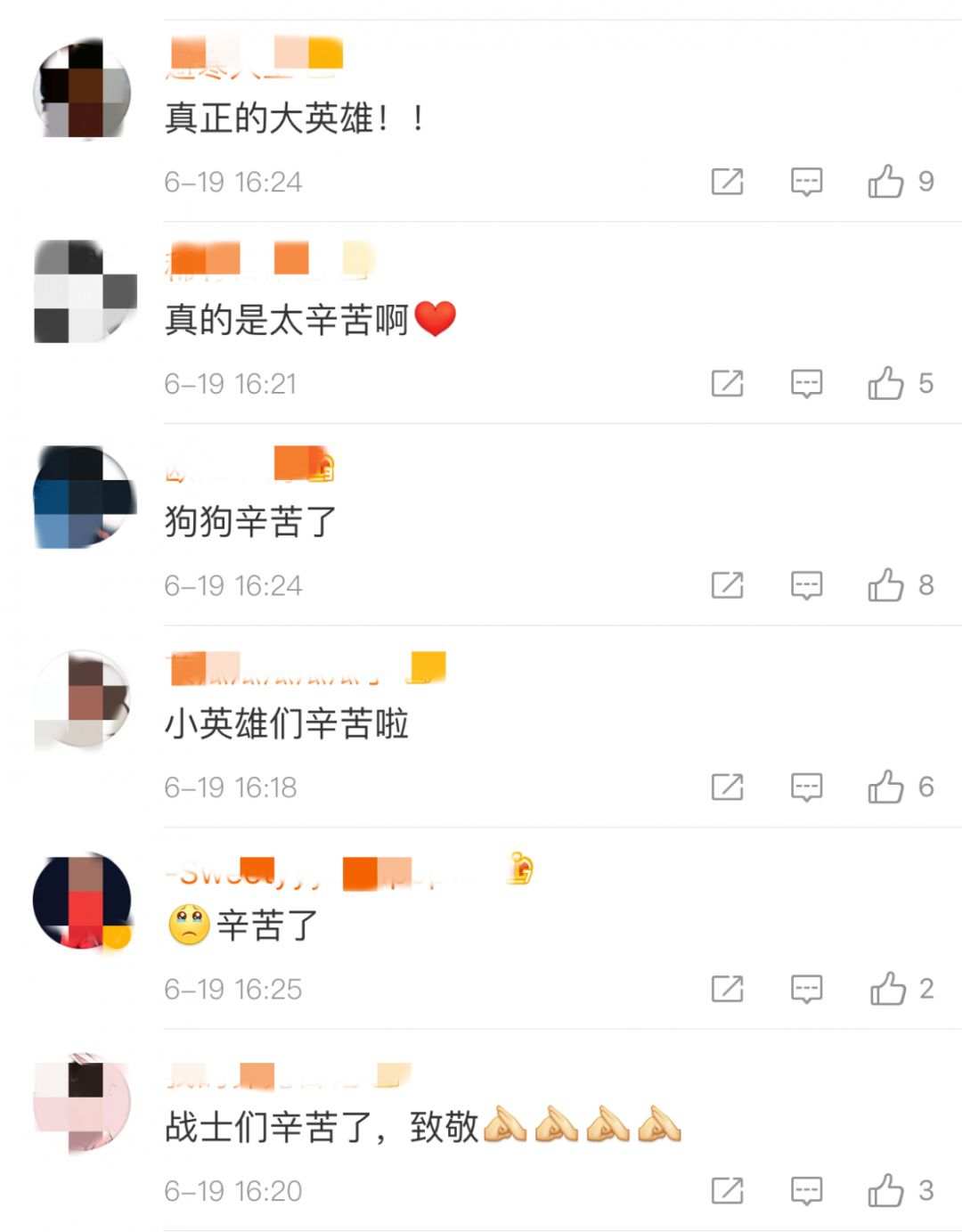 從17日晚到現(xiàn)在,兩只搜救犬一直和救援隊員們在一起,忠心耿耿任勞任怨地進行搜索排查工作,它們始終沖在搜救現(xiàn)場的最前鋒,不喊苦不喊累。
