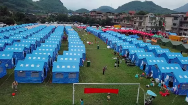 6月19日中午,此前應急管理部緊急調運的5000頂帳篷、1萬張折疊床和2萬床棉被,已陸續發放到受災群眾手中。在四川宜賓長寧雙河中學安置點,操場上搭起了一排排的帳篷,近1500名受災群眾被安置在這里。臨近傍晚,武警官兵準備了熱飯、熱菜,受災群眾在保障點的前面排起長隊。
