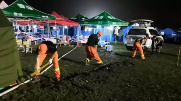 地震安置有條不紊:有熱飯 充電寶 露天電影院