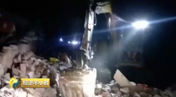 17日晚上進行救援的時候,長寧縣消防救援大隊宋家壩中隊從距離不遠處的工地上,臨時征調來挖掘機,前期清理廢墟,終于在樓板之間發現了一個被困其中的女孩。