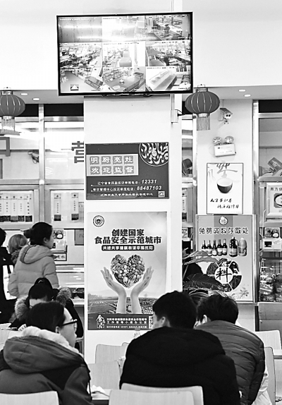 遼寧省沈陽市高校食堂內安裝監控攝像頭,并在外部設置顯示屏,通過實時監控實現“明廚亮灶”,讓師生吃得放心、吃得明白。光明圖片/視覺中國